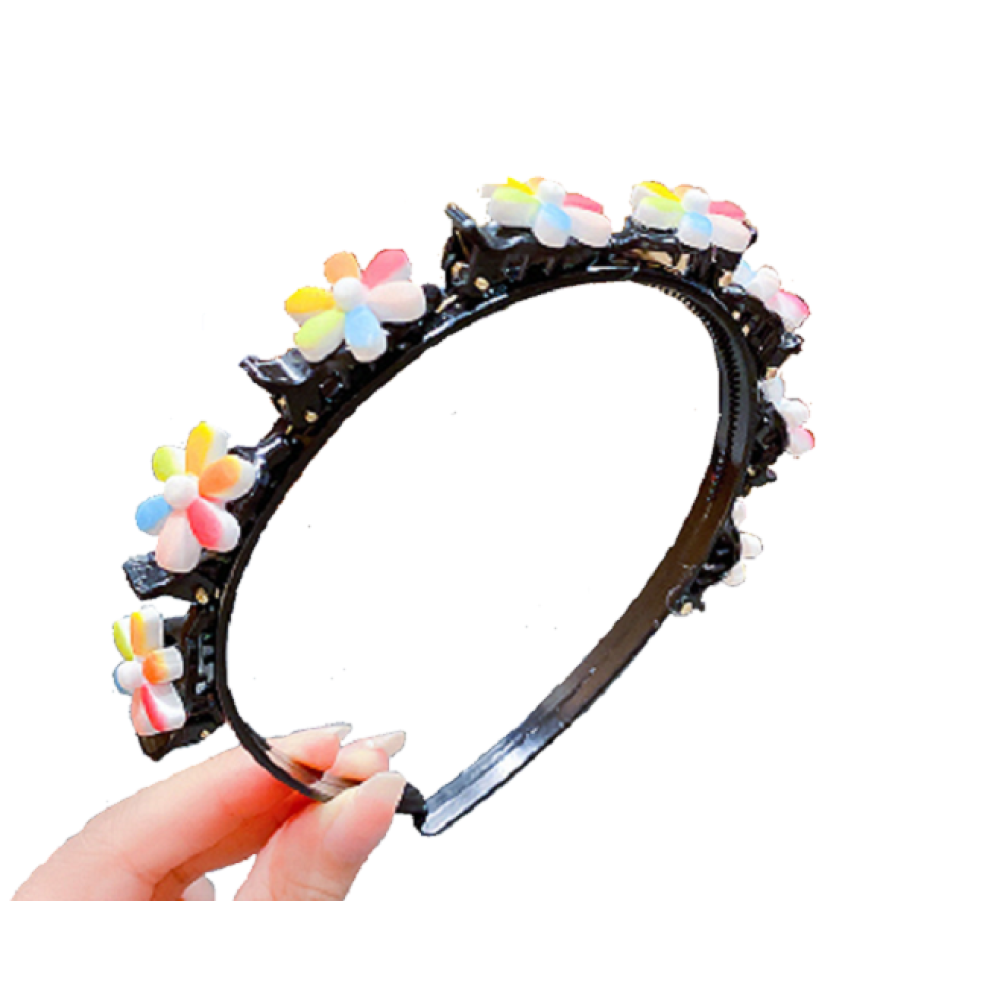 Diadeem met clips - regenboog bloemen