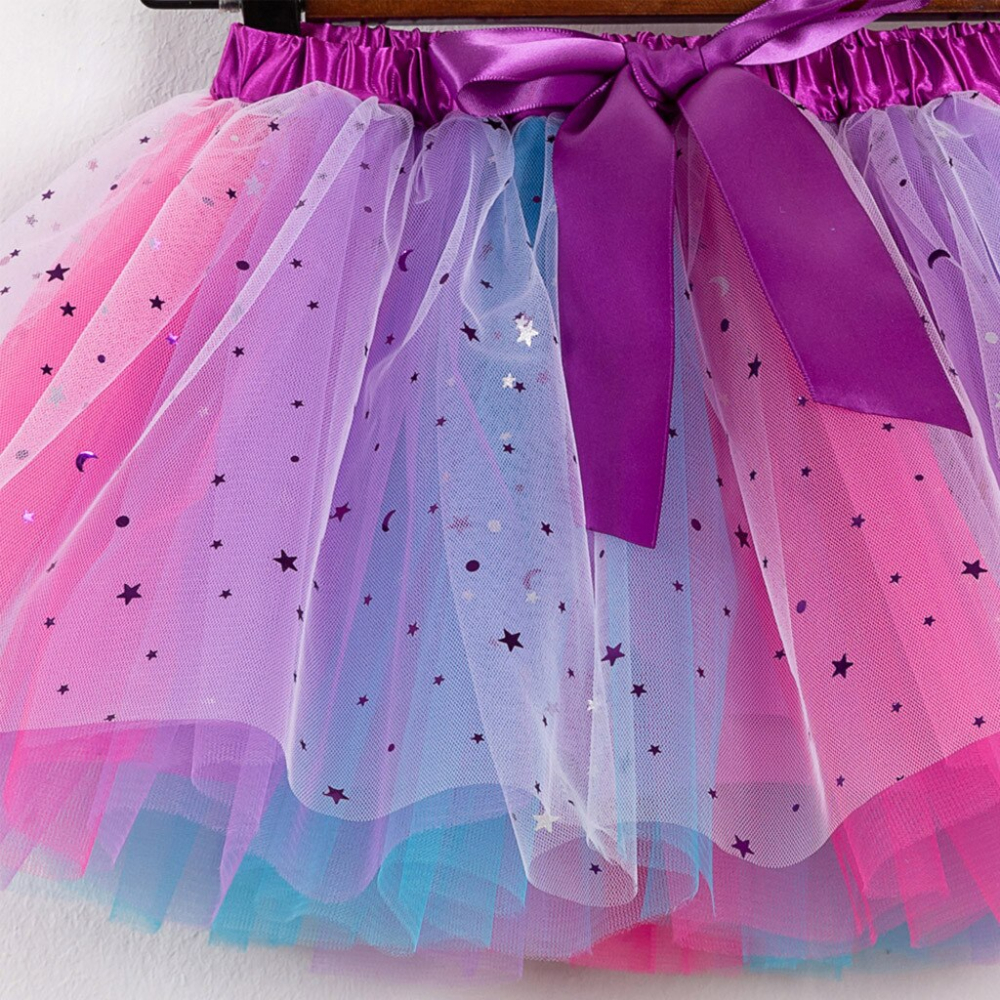 Leuke meisjes rok met mooie paars/lichtblauwe/rouge stroken tule inclusief Glitter & Glamour versiering.