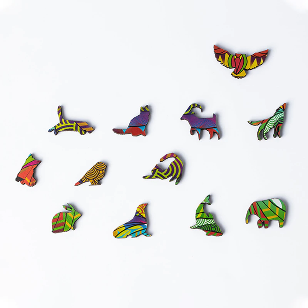 Elk puzzel stukje is anders en tezamen vormen zij de dierenpuzzel van formaat! Zelfs tot de laatste stukjes in het zoeken hoe deze in het figuur passen. Tesamen vormen alle stukjes de puzzel in dieren figuur. Een uitdagende puzzel voor jong en oud, voor uren puzzel plezier!