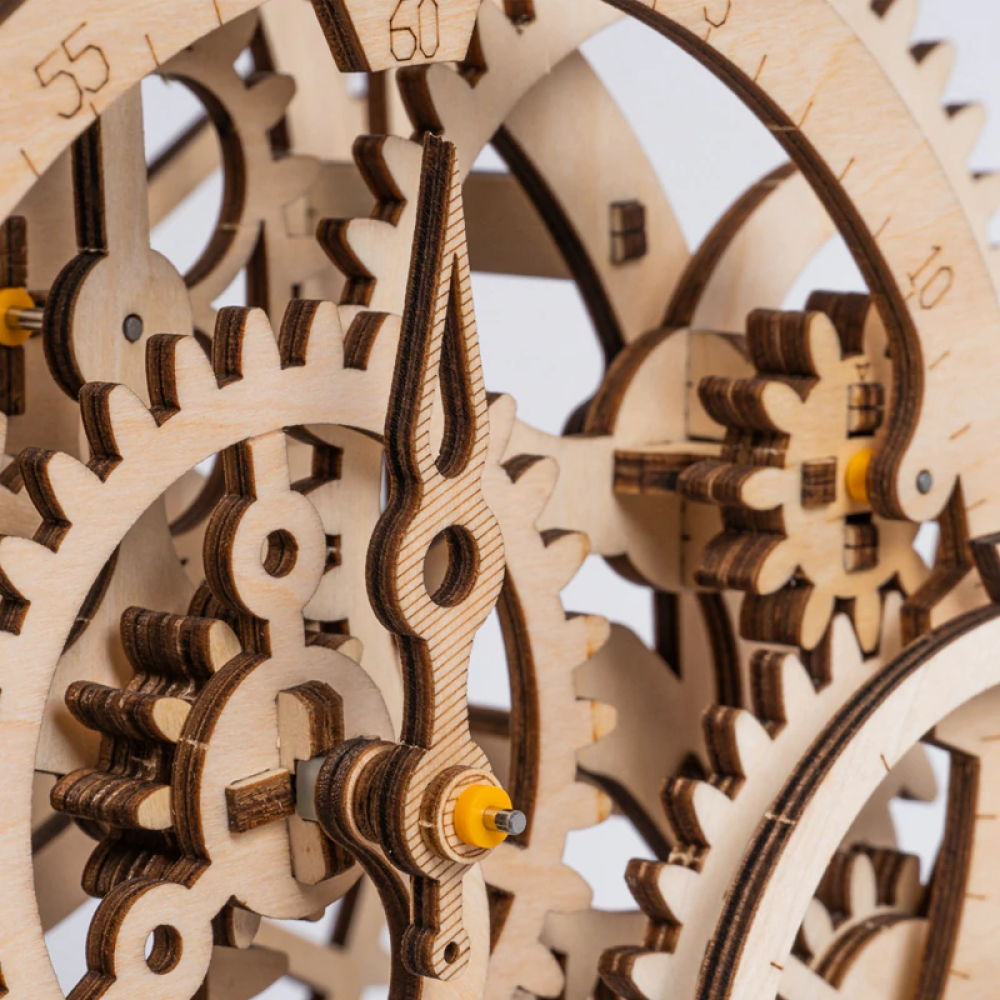 Alle houten onderdelen zijn gemaakt van multiplex, laser gesneden en makkelijk uit het bord te drukken.
