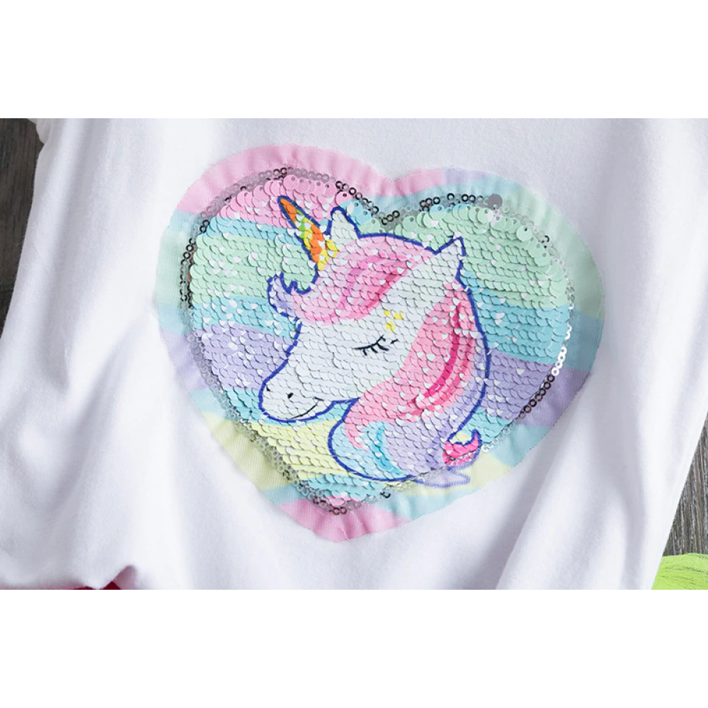 Eenhoorn shirt ( met pailletten ) met tutu rokje in vrolijke kleuren